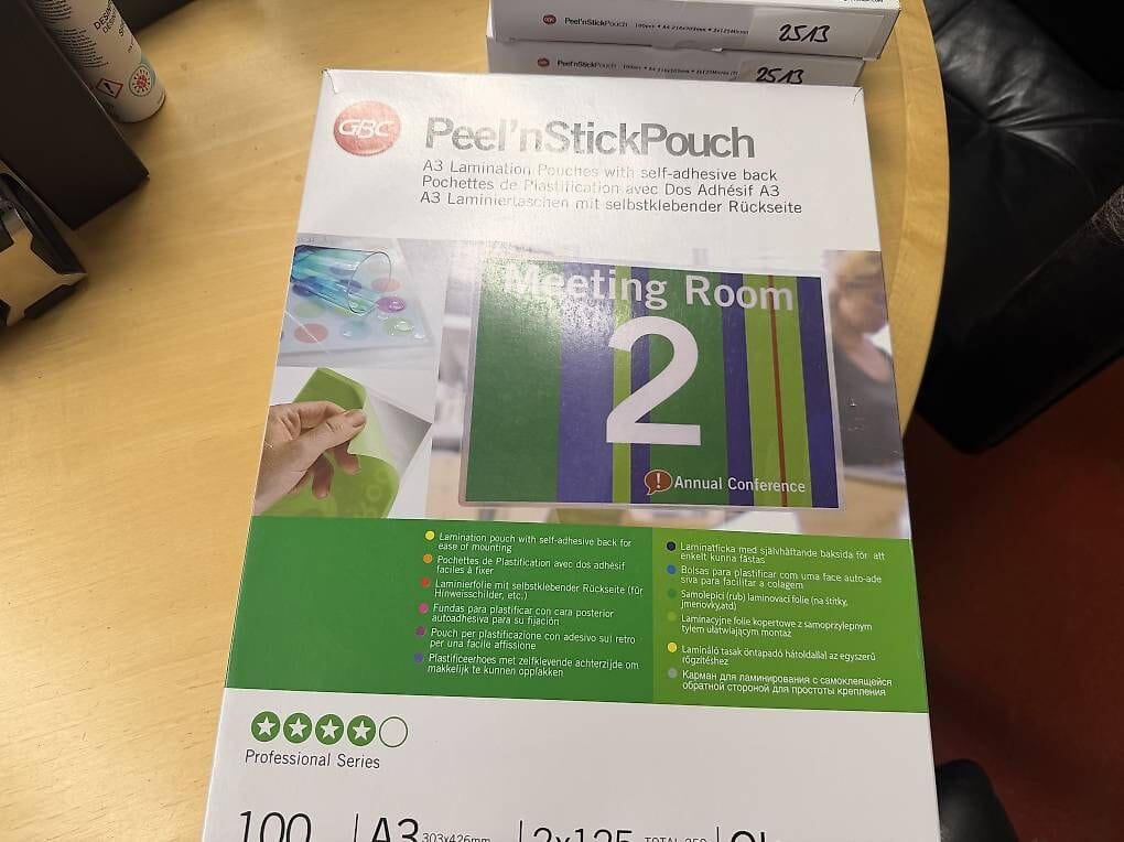 Mit den Peel'nStick Pouch Professional Laminierfolien von GBC lassen sich auf schnelle, einfache Weise auffallende Schilder in Profiqualität gestalten. Diese Laminierfolien sind ideal zum Aufkleben von Hinweisschildern und zur Verwendung in Heißlaminiergeräten. Dank der selbstklebenden Rückseite benötigen Sie kein zusätzliches Klebemittel.