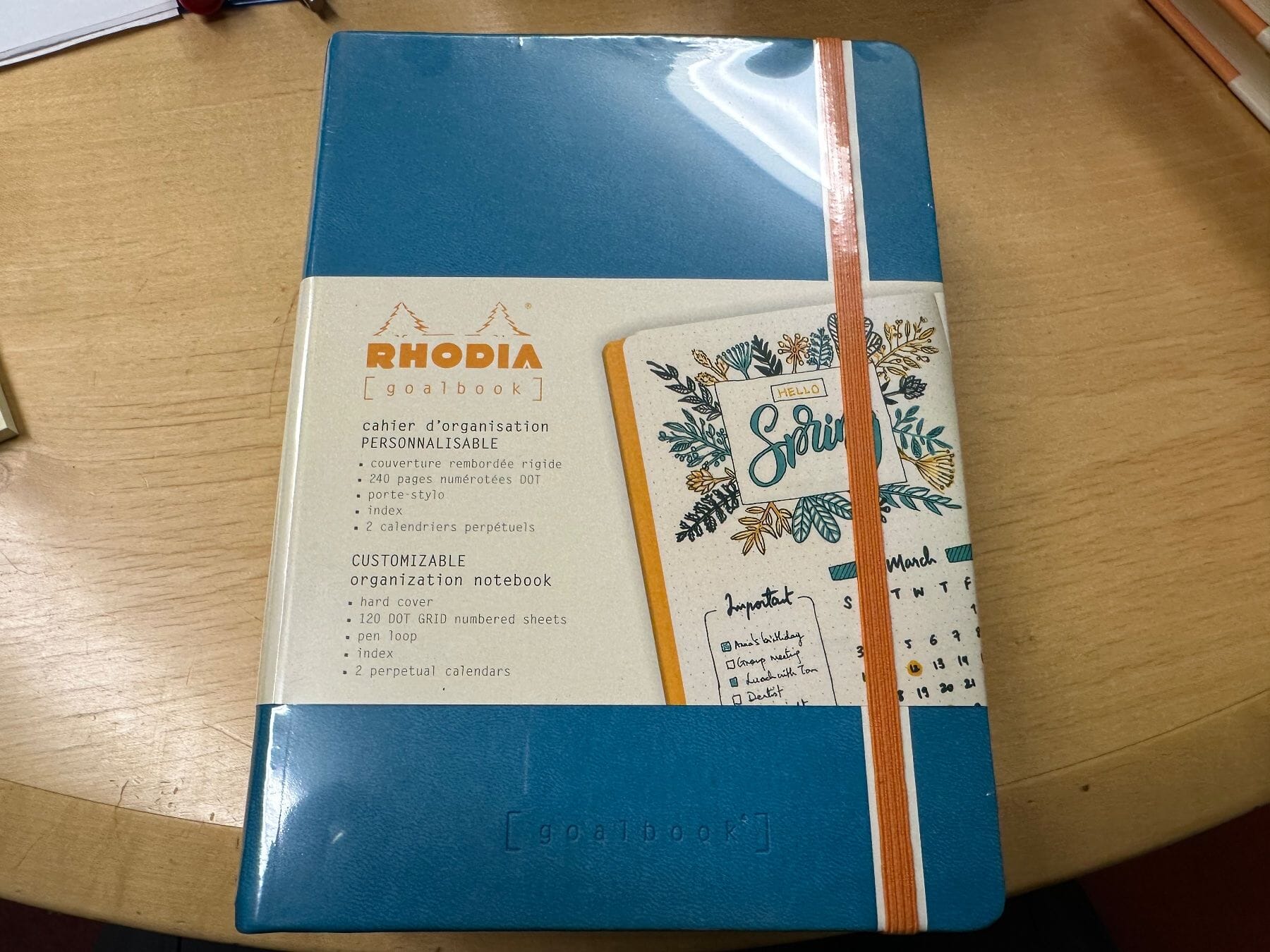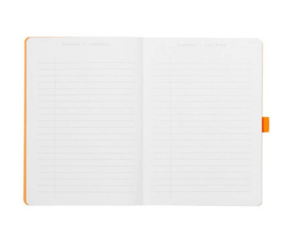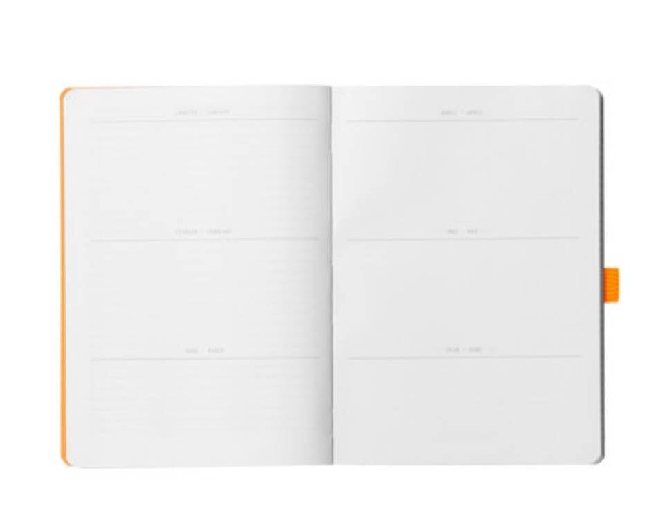 Rhodiarama Goalbook mit festem Einband A5, 240 Seiten, Punktepapier, weiss, 90 g. Das Goalbook ist das ideale Werkzeug für Bullet Journaling, das Ihnen hilft, Ihr tägliches Leben zu organisieren und sicherzustellen, dass nichts vergessen wird. Es ist dank seiner 240 unperforierten Seiten, von denen 224 nummeriert sind, sowie 6 Inhaltsseiten und 2 ewigen Kalendern ultra-anpassbar. Es verfügt über ein genähtes, robustes Heft mit einem Gummibandverschluss, einem italienischen Kunstledereinband und einem geprägten Rhodia-Logo. Es enthält drei Lesezeichen und eine Faltentasche