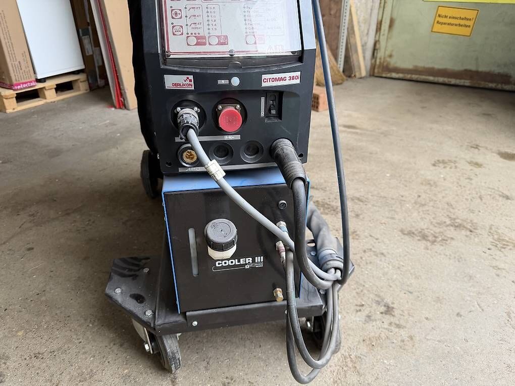 Profi Oerlikon MIG MAG Schweiss-Anlage 400A, mit 4mZwischenschlauch-Paket zur Vorschubeinheit inkl Fahrwagen, die Schweissmaschine ist schweissbereit
