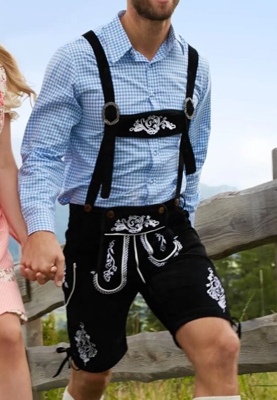 Schwarze Lederhose in klassischer Trachtenform