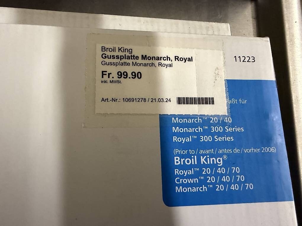 neue Broil King Grillplatte / Gussplatte Monarch / Royal